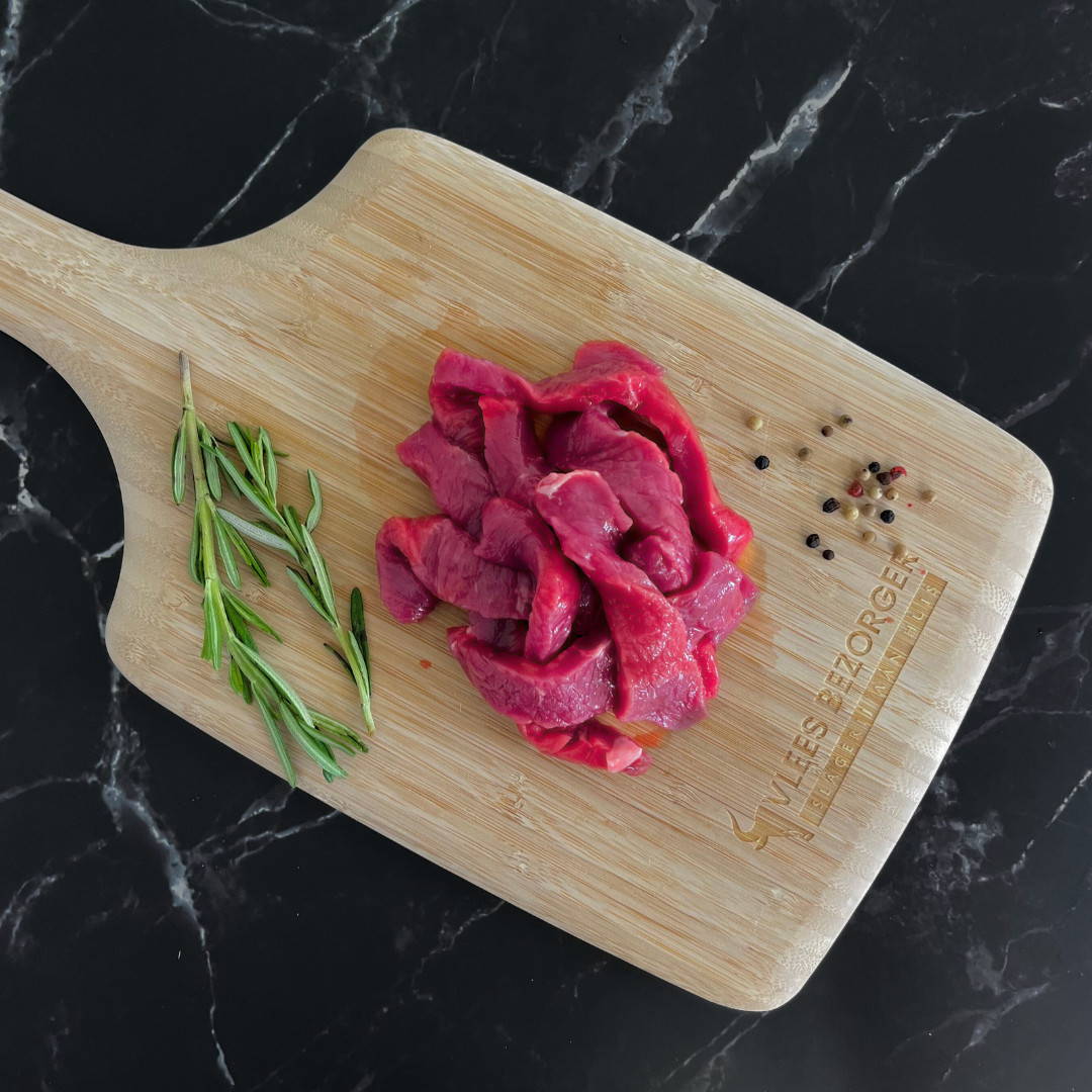 Heerlijke, malse biefstukreepjes, perfect gesneden van de beste kwaliteit rundvlees. Deze reepjes zijn sappig en rijk van smaak, ideaal voor een snelle en smaakvolle maaltijd. Gebruik ze in wokgerechten, wraps, salades of roerbakschotels. Kruid ze naar smaak en bak ze kort op hoge temperatuur voor het beste resultaat. Eenvoudig, veelzijdig en altijd lekker!